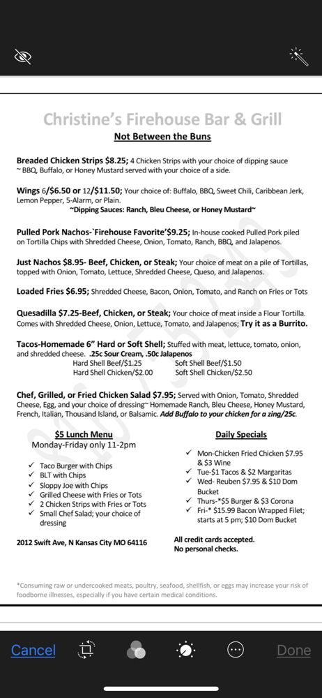 Located in North Kansas City, Christine’s Firehouse offers a dive bar experience with a variety of American cuisine options. The menu boasts many vegetarian choices and features a standout pork tenderloin. Customers rave about the generous portion sizes, flavorful dishes, and the friendly, efficient service provided by the staff. The ambiance is casual yet inviting, with live music on Sundays and a full bar for guests to enjoy. Known for their enormous tenderloin sandwiches, Christine’s Firehouse has become a local favorite for those looking for delicious comfort food in a laid-back setting. The eclectic décor themed around firefighters adds to the unique charm of the establishment. Overall, this women-owned restaurant provides a welcoming atmosphere where everyone feels like a regular.